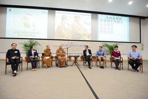 星云大师一生致力于建立、实践和推广人间佛教思想,屡次公开提出“当代社会需要人文关怀”,而这种关怀应推己及人,从亲人朋友、社会大众,进而延伸至对自然环境的关切;沈祖尧校长则一向重视人文精神,更在大学倡导成立“博群计划”,培育学生的公民责任感及贡献社会的心志,二人在坚持人文精神的态度上如出一辙。面对学生和场内人士的提问,两位人生导师字字珠玑,发人深省,让在座人士获益良多。