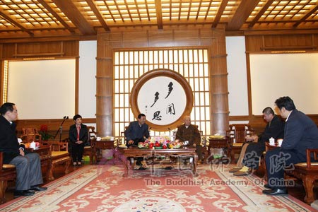 中国佛教协会副会长、中国佛学院常务副院长湛如法师,教务处主任理证法师,办公室张军主任,法源寺知客智勇法师等陪同会见。