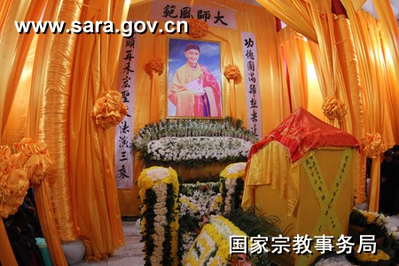 谭建祥主任宣读了全国人大常委会原副委员长许嘉璐发来的唁电,许老在唁电中说:“惊悉噩耗,不胜震悼。须弥山中增一菩萨,娑婆尘间少一法音。愿长老宏德永存!愿佛法普照!”中央统战部袁莎副局长宣读了中央统战部的唁电,中国佛教协会副秘书长演觉法师宣读了中国佛教协会的唁电。