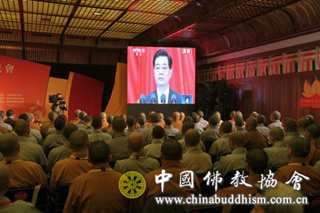 法师们认真聆听胡锦涛总书记讲话