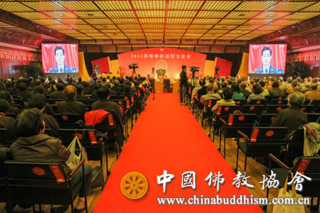 佛教在线浙江讯 2012年11月8日上午,中国共产党第十八次全国代表大会在北京人民大会堂隆重开幕。2012汉传佛教讲经交流会举行期间,喜逢党的十八大胜利召开,因缘殊胜,令人振奋。中国佛教协会组织参加讲经交流会的全体评委、讲经法师、工作人员和听经居士五百余人,观看学习党的十八大开幕式盛况,满怀喜悦地聆听胡锦涛总书记代表党中央做的重要报告。观看学习活动由中国佛教副会长明生法师主持。中国佛教副会长湛如法师与大家分享了观看党的十八大开幕式盛况的感想和体会。