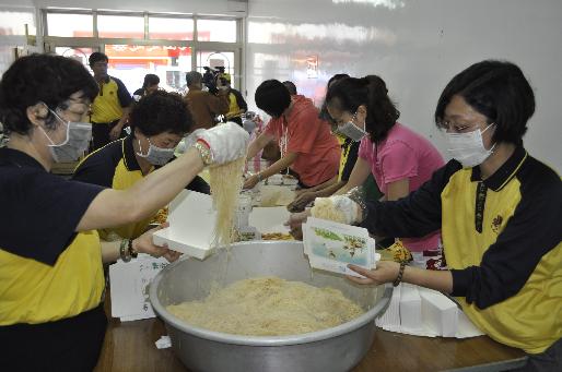 潮州讲堂监寺如庆法师及国际佛光会恒春分会会长郭贵美带领佛光会内埔分会、潮一分会、东港分会23名干部及会员,8月25日在恒春佛光缘早晚各准备2500份便当,法师们亲自到重灾区─山脚里分送便当给里民,里民手中握着热腾腾的便当,林姓灾民真诚的说: “谢谢佛光山的关心,想不到佛光会有想到我们,设想周到照顾我们三餐,还协助我们清理家园,佛光会 “足感心”(台语:意思是很窝心)。”