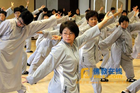 当天,82位选择参加一日禅行门修持,全日八支香别,依循维那妙浩法师的引导跑香、静坐,认真摄心守意,训练专注力,单纯的观心明心。