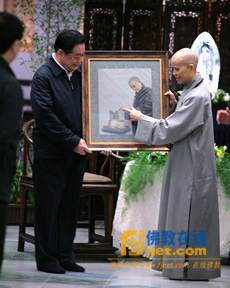 蒋巨峰省长向证严法师赠送画像