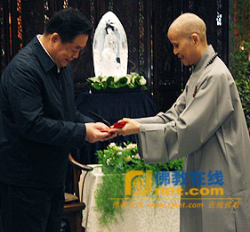 证严法师向四川蒋巨峰省长赠送礼物