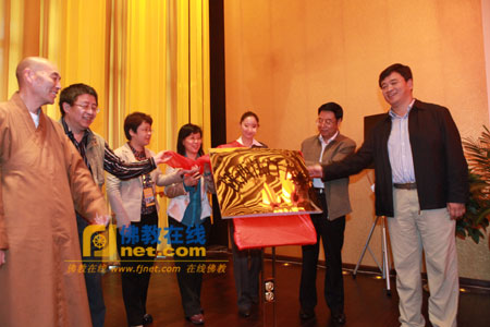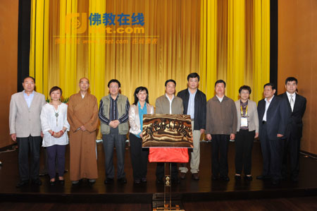 宝鸡市副市长、法门寺景区管委会主任张敬原,曲江管委会副主任、法门寺景区文化产产业集团董事长刘兵,扶风县县长马鲜萍,法门寺景区管委会副主任何长发,法门寺监院智超法师,法门寺博物馆馆长姜捷,佛教在线总干事安虎生,原法门寺博物馆馆长、法门书院常务副院长韩金科,法门寺景区文化产业集团常务副总经理唐喆及各下属公司中层以上人员参加了揭牌仪式。