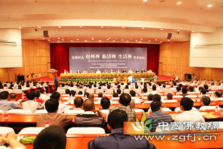 保定佛教咨询转 佛教在线河北讯 2011年5月14日上午,由河北省社会科学院、河北省民宗厅、河北省佛教协会主办,社科院哲学所、赵县柏林禅寺承办,石家庄市民宗局协办的“首届河北赵州禅·临济禅·生活禅学术论坛”在石家庄河北会堂国际会议礼堂隆重开幕。来自日本、韩国等国,中国台湾、香港、澳门地区,以及中国社科院、北京大学、人民大学、北京师范大学、中央民族大学、中国政法大学、中央党校、南京大学、武汉大学、南开大学、中山大学、四川大学等50多所高校、社科研究机构近120多位专家学者出席开幕式。