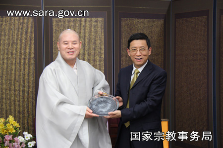 国家宗教事务局蒋坚永副局长与韩国佛教曹溪宗总务院长慈乘长老