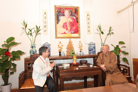 当日下午,随行的湖北电视台记者对净慧长老进行了专访。
