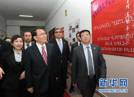 保定佛教资讯转 佛教在线海外讯 当地时间2011年4月11日下午,中共中央政治局常委李长春参观了亚美尼亚埃里温布留索夫国立语言大学孔子学院。