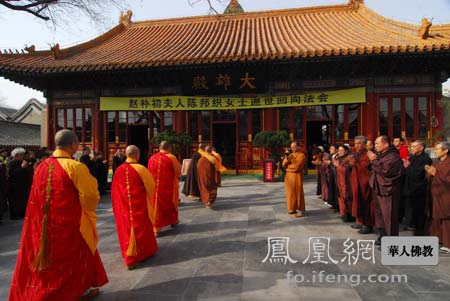2011年4月8日下午15:30,中国佛教协会在北京广济寺举行“赵朴初夫人陈邦织女士逝世回向法会”。法会由中国佛教协会教务部主任宏度法师主持,中国佛教协会中国佛教协会副会长学诚法师,中国佛教协会副秘书长、广济寺方丈演觉法师,中国佛教协会副秘书长、灵光寺方丈常藏法师共同主法。中国佛教协会秘书长王健,副秘书长张琳、卢浔,中国佛学院副院长张厚荣及本会各部室负责人和僧俗工作人员,以及广济寺、灵光寺、法源寺僧众、中国佛学院师生及首都佛教信众百余人参加了法会。国家宗教事务局一司裴飙副司长等有关部门负责人莅临法会。