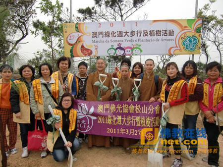 保定佛教资讯转 佛教在线澳门讯 为推行国际佛光会世界总会2011年“环境与心保”的主题,2011年3月27日,澳门佛光协会松山分会辅导有净法师及松山分会吴金燕会长带领一行20余人参加了由澳门民政总署举办的“第30届澳门绿化周植树活动”。此次活动的宗旨是通过植树,提升大家对环保的意识,呼吁全民同心一起支持环保,绿化环境,提升空气指数。此外,也借机让生活繁忙的都市人亲近大自然,舒缓平日的压力。
