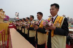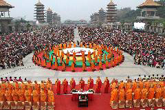 近三万信众恭诵观世音菩萨圣号及大悲咒,主法和尚慈悲以甘露法水洒净,接著全场以最恭敬虔诚的心灵,殷殷祈请“启告十方”恭请佛菩萨降临坛场,近三万人心口一如诵持“八十八佛大忏悔文”,止静时悠悠古筝清扬,入人心扉五欲尘劳刹那消散,一声木鱼轻脆响起,心培和尚为大众开示:“…修心修口修佛心,三业清净修持才能有功德,为日本东北大地震回向!”接著,赞佛、念佛、拜愿、献灯,全体读诵星云大师“为日本东北大地震祈愿文”,一瓣心香为日本震灾祈福,也为台湾同胞祈愿免于灾难,在大众感动中法会圆满落幕。