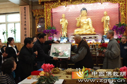 省民宗厅一处赵明宇处长赠送净慧老和尚礼物