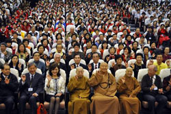谈到修行,星云大师表示要在行住坐卧中修心;修行不能只管自己,在现代修行,要从深山走入社会、从寺院走进家庭,让佛教的慈悲、平等、友爱、放下、自在、清凉遍满人间,回复佛陀时代对人间关怀的佛教。最后,星云大师以“出家好,在家好,大家都好”,鼓励大众发菩提心,做发心菩萨。并祝福大家要有佛法,自然有办法、有快乐、有喜悦、有安心。
