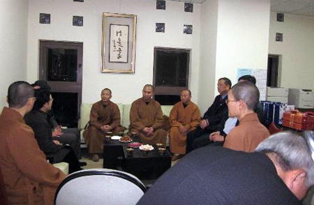 保定佛教转佛教在线台湾讯 江苏南京市宗教局局长朱淮宁、南京栖霞古寺方丈隆相法师等一行8人,于2010年12月10日晚到台湾彰化福山寺参访。福山寺社区大学主任妙兴法师偕同僧众及20位知宾一同迎接参访团一行。