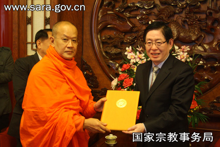 帕·唐马斯提纳优向王作安局长递交泰国僧王贺信