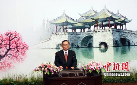 11月27日下午,中国前国务委员唐家璇在江苏省扬州莅临“扬州讲坛”,开讲《鉴真东渡与中日友好》
