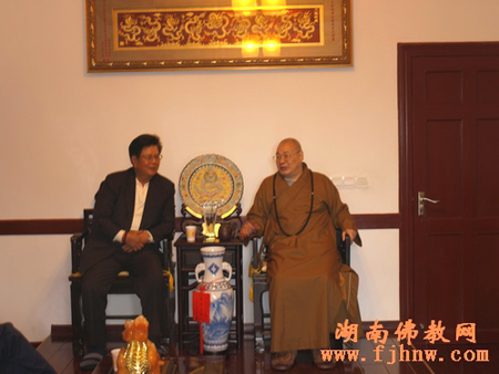 保定佛教转佛教在线湖南讯 2010年11月27日,中央驻香港联络办公室周俊明副主任、东海联合集团有限公司黄楚标主席在湖南省委统战部孙剑霖副部长的陪同下,到湖南省长沙市古麓山寺参访,并拜访了湖南省佛教协会会长、长沙古麓山寺方丈圣辉法师。