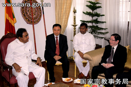 保定佛教转佛教在线海外讯 2010年11月20日,斯里兰卡总理贾亚拉特纳在总理府会见了中国国家宗教事务局局长王作安一行,双方就提升两国宗教交流水平交换了意见。
