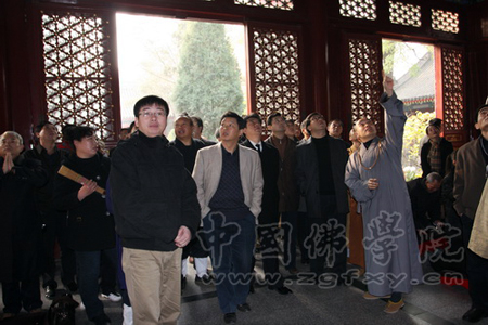 宗性法师亲自陪同学员参观了法源寺的各个殿堂和中国佛学院教学楼等,并详细介绍了法源寺的历史和中国佛学院的办学情况。