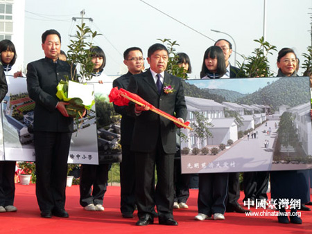 保定佛教转佛教在线四川讯 2010年11月19日上午,台湾慈济基金会“5·12”灾后在川援建项目在德阳什邡集中交付启用,13株象征着希望的树苗和1把金灿灿的钥匙从台湾慈济基金会副总执行长王端正先生的手中传递到地震灾区13所受援中小学校长和中江县富兴镇光明村大爱屋居民代表的手中。海峡两岸关系协会会长陈云林宣布项目正式交付启用,中共四川省委副书记李崇禧出席仪式并讲话。