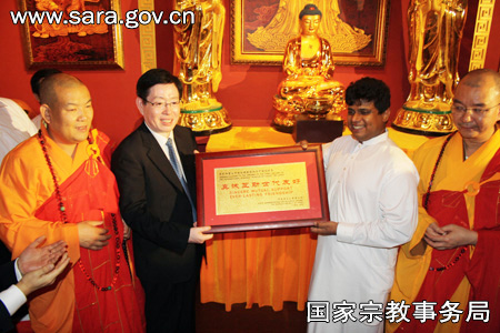 王作安局长向斯里兰卡国际佛教博物馆中国馆赠送牌匾