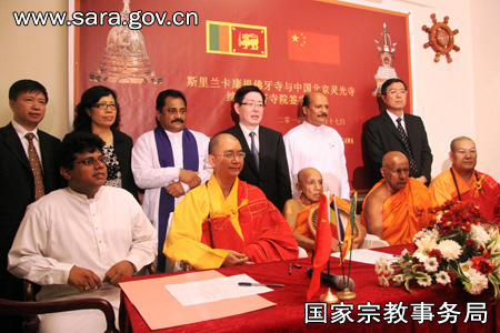 王作安局长出席北京灵光寺和康提佛牙寺缔结友好寺院签字仪式