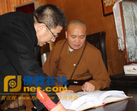 安虎生总干事向永寿法师介绍《中华佛教文化年鉴》
