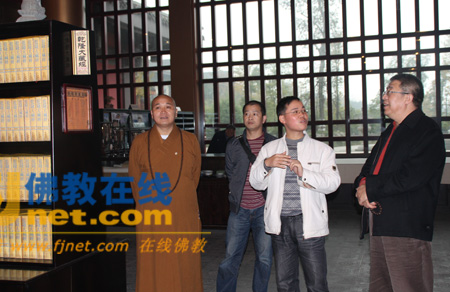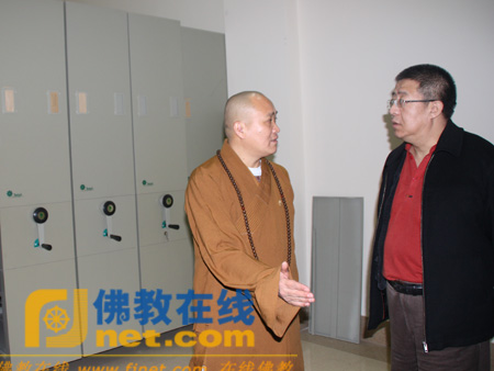 永寿法师向安虎生总干事介绍完善中的档案馆