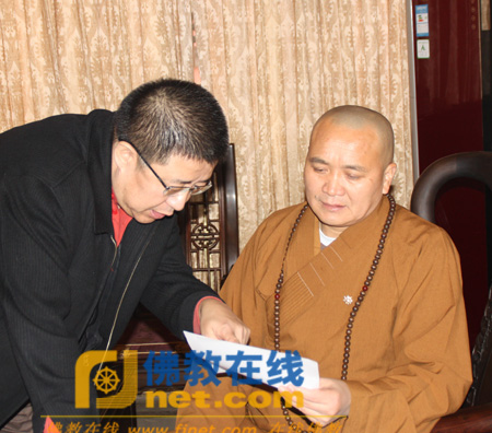安虎生总干事向永寿法师汇报“佛门祈愿 共建和谐”文化活动