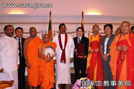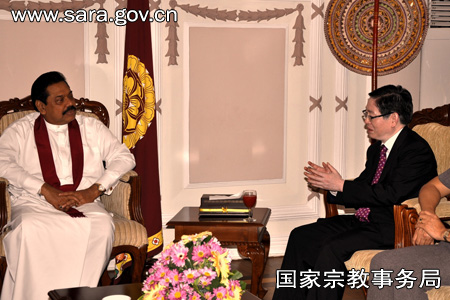 保定佛教转佛教在线海外讯 2010年11月15日,应斯里兰卡总理和宗教部长贾亚拉特纳和斯里兰卡佛教界邀请到访的中国国家宗教事务局王作安局长,在斯里兰卡总统府会见了斯里兰卡总统拉贾帕克萨。