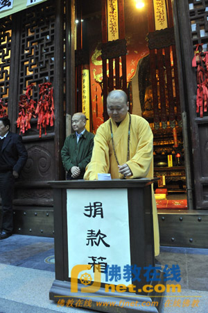 在活动现场,玉佛禅寺全体僧职人员自发地向遇难同胞捐赠,觉醒法师代表玉佛禅寺通过上海市慈善基金会向“11·15特大火灾”遇难人员捐赠人民币20万元,同时向遇难同胞捐赠棉被100余床。市慈善基金会副理事长郭开荣先生代表市慈善基金会接受了捐赠。