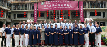 印尼慈济基金会执行长刘素美,副执行长郭再源伉俪,印尼慈济学校建校委员长黄荣年,文教组负责人陈乃士,环保功能总干事吴其顺,社会热心人士等,逾200人出席见证该封顶仪式。