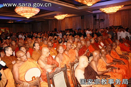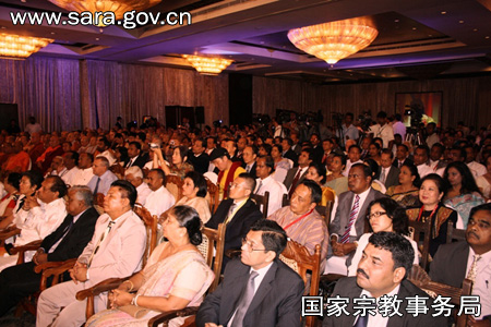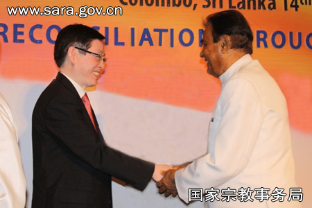 王作安局长在开幕式上与斯里兰卡总理亲切握手。(图片来源:国家宗教事务局)