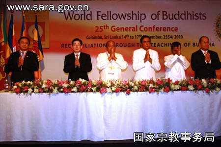 王作安局长(左二)出席第25届世佛联大会开幕式。(图片来源:国家宗教事务局)