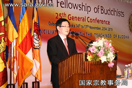 保定佛教转华人佛教讯 11月14日,应世界佛教徒联谊会主席瓦纳密提和本届大会组委会主席、全锡兰佛教会主席贾格特邀请,国家宗教事务局局长王作安出席了第25届世佛联大会并在开幕式上致辞。王作安说,世佛联作为全世界佛教徒增进友谊、加强团结、深化交流的重要平台,秉承“促进佛教徒严格实践佛陀的教义,加强佛教徒的紧密团结,促进世界和平与众生幸福”的宗旨,在联合各国佛教徒弘法利生方面发挥了积极作用。我们尊重世佛联所付出的努力,赞赏世佛联所取得的成就。