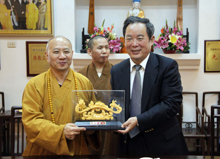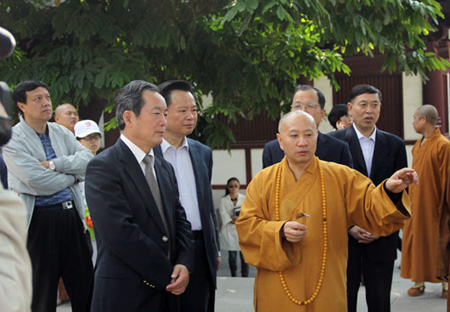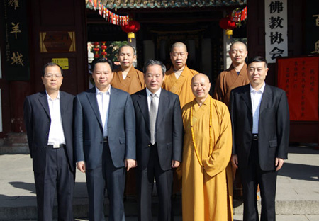 保定佛教转佛教在线广东讯 2010年11月12日上午,中共中央统战部常务副部长朱维群在广东省委常委、省委统战部部长周镇宏的陪同下一行10人到光孝寺参观访问,受到广东省佛教协会会长、光孝寺方丈明生法师等的热情迎接。