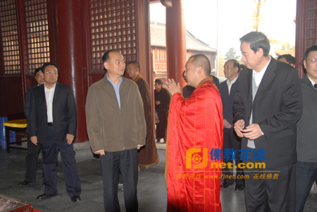 保定佛教转佛教在线江苏讯 2010年11月14日下午4时,国家宗教事务局齐晓飞副局长一行在江苏省泰州市委书记张雷、江苏省宗教局副局长沈祖荣、泰州人民政府副市长刘励和泰州市民宗局局长马林的陪同下来到光孝寺视察。