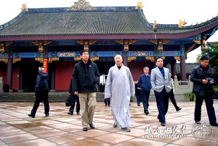 保定佛教转佛教在线四川讯 2010年11月14日下午,国家人力资源和社会保障部副部长、党组成员王晓初一行,在乐山市政府副秘书长胡东升、乐山市人力资源和社会保障局局长肖瑶伦等的陪同下,到峨眉山大佛禅院视察参观,受到峨眉山大佛禅院监院常性法师等的热情接待。