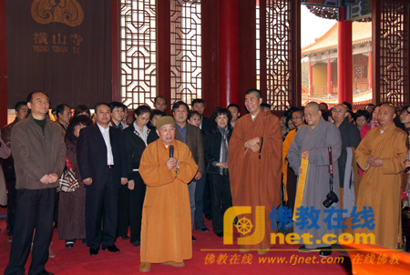 齐晓飞副局长、传印长老一行参观了寺院建设,并高度评价了寺院的建筑风格、宏大规模、精湛的造像。随后,二人分别发表了讲话。