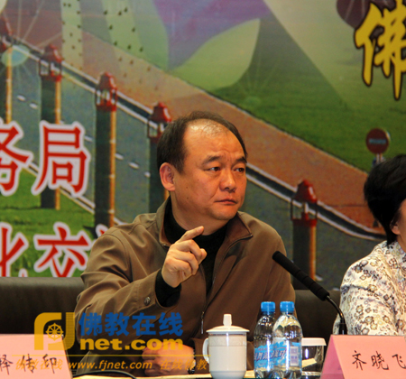 齐晓飞副局长在讲话中表示佛教文化是中国传统文化不可分可的重要的组成部分。大连市宗教文化交流协会是继中华宗教文化交流协会成立后国内第一个成立宗教文化交流组织,大连能举办这次的佛教与中国传统文化论坛对弘扬传播佛教文化、对构建和谐社会有着重要意义。其间,齐晓飞还展示了由他题、传印长老书写的书法作品。