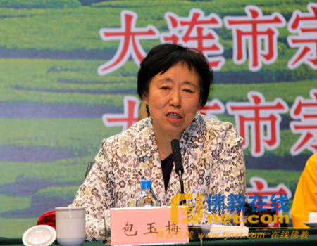大连市宗教文化交流协会名誉会长、辽宁省宗教局局长包玉梅在讲话中感谢中国佛教界的领袖传印长老和国家宗教事务局齐晓飞副局长莅临大连,她希望大连的宗教干部、佛教界人士以此为契机,做好宗教文化的交流、弘扬中国传统文化,全市43座寺院300余名僧人要加强学习,提高素质,展示佛教的新形象、新面貌、新境界,秉承佛教的优良传统、爱国爱教、参与社会慈善事业,为建设和谐社会做积极贡献。