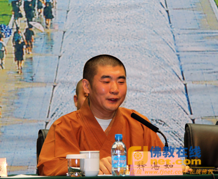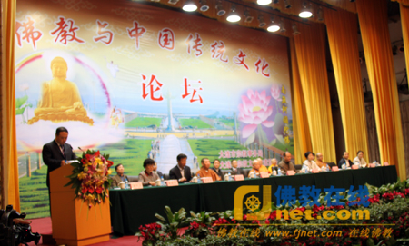 中国佛教协会副会长、大连横山寺方丈湛如法师就“佛教与中国传统文化论坛”作了讲话,他说释迦牟尼佛时代是一个人类文明的特殊时代,涌现出了一大批的宗教家、哲学家、思想家等诸圣人,如老子、庄子、孔子、孟子,佛教的“缘起性空”思想与中国传统文化思想的结合,形成了具有清明、朗照、宁净等特点的“中华民族精神气质”,必将会在二十一世纪东方文明中发挥着重要作用。他讲到佛教著名的大译经师玄奘大师取经往返17年归国是真正的“海归”,为中国的佛教的发展做出了巨大贡献,鲁迅先生称之为“民族的脊梁”。佛教对中国书法、绘画、诗歌文学、建筑、音乐、舞蹈等都产生巨大影响,因此我们今天弘扬传统文化离不开佛教文化。