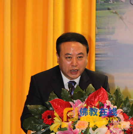 最后,大连市政协副主席、大连市委统战部部长董长海发表讲话,他希望宗教文化、佛教文化以此次论坛为契机深挖佛教精神的内涵,发挥佛教利于社会道德、伦理、净化人心、规范行为的作用。他对宗教干部、佛教僧众提出四点建议,一是积极参加国家宗教局在全国宗教活动场所开展的“争创和谐寺观”活动;二是加强寺院的财务管理工作,大连早在2008年就开始在宗教活动场所进行财务管理的试点工作,2010年国家宗教局宗教活动场所财务管理规范工作已经在全国开始,大家要认真贯彻落实规章制度;三是加强僧团队伍建设,以戒为师、健康发展,广泛开展讲经说法活动,出人才、出高僧;四是弘扬传统文化发扬佛教慈悲济世精神,为和谐社会建设发挥优势和作用。