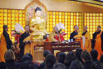 当天下午1时30分由佛光山日本教区总长慈容法师为戒子们讲解仪轨,下午2时大家以恭敬虔敬的心,迎请星云大师授戒。