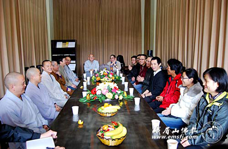 四川峨眉山佛学院副院长满霖法师对段玉明教授一行的到来表示欢迎,并简单介绍了四川峨眉山佛学院的情况。双方就佛教有关话题进行了座谈交流。