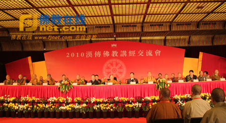当日下午2点整,2010汉传佛教讲经交流会闭幕式隆重举行,中国佛教协会传印会长、学诚副会长、明生副会长、如瑞副会长、湛如副会长、心澄副会长、道慈副会长、王健秘书长,中国佛学院向学副院长、宗性副院长兼教务长,浙江省佛教协会怡藏副会长、杭州市佛教协会光泉会长出席了闭幕式。