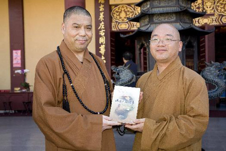 慧济法师代表常住向增勤法师赠送结缘品“佛光山的故事”