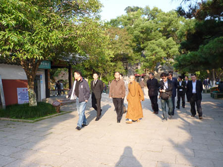 智明法师带领齐晓飞副局长一行参观了江心屿中的宋文信国公祠、温州盆景园及江心寺。齐晓飞副局长对江心屿及江心寺的管理工作情况等给予了充分肯定。